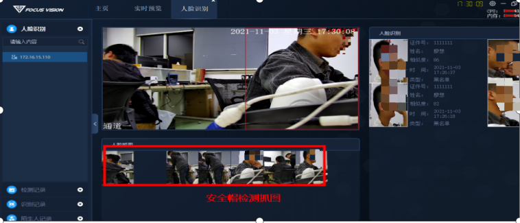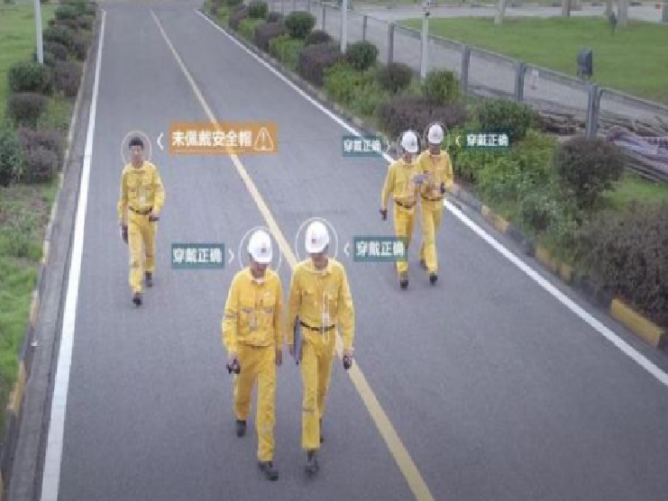 画面内人员安全帽佩戴状态可实时刷新,避免人员进入工地后不规范佩戴安全帽现象的发生。
